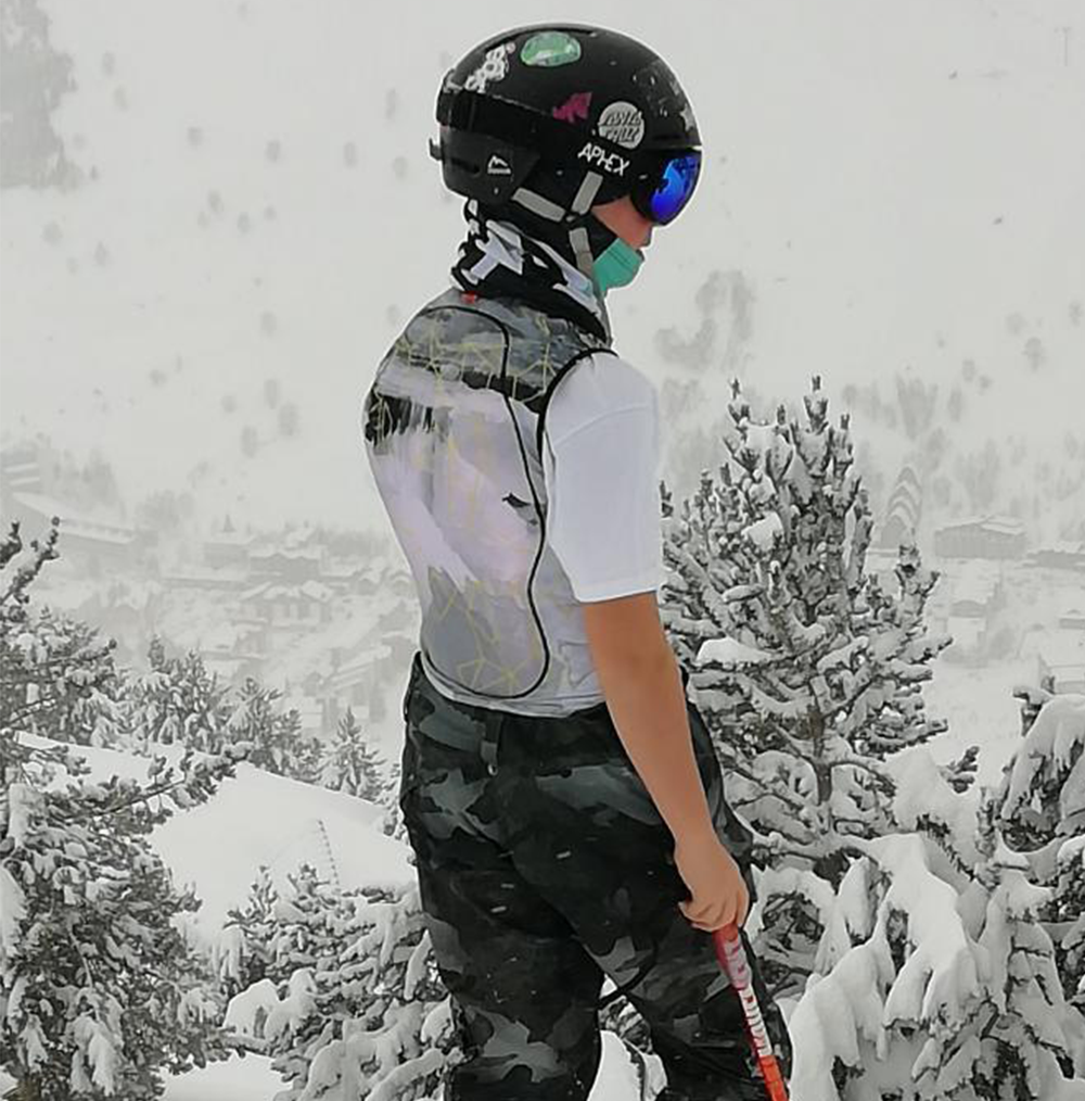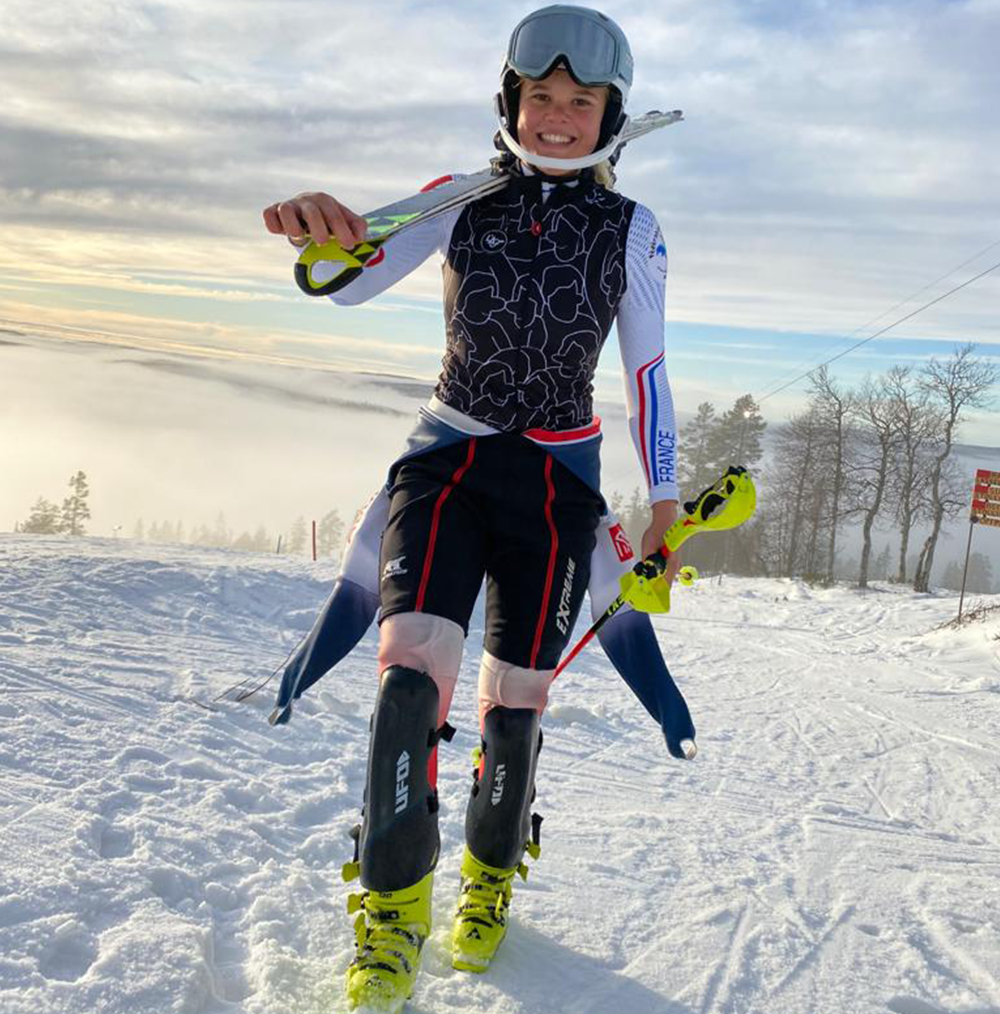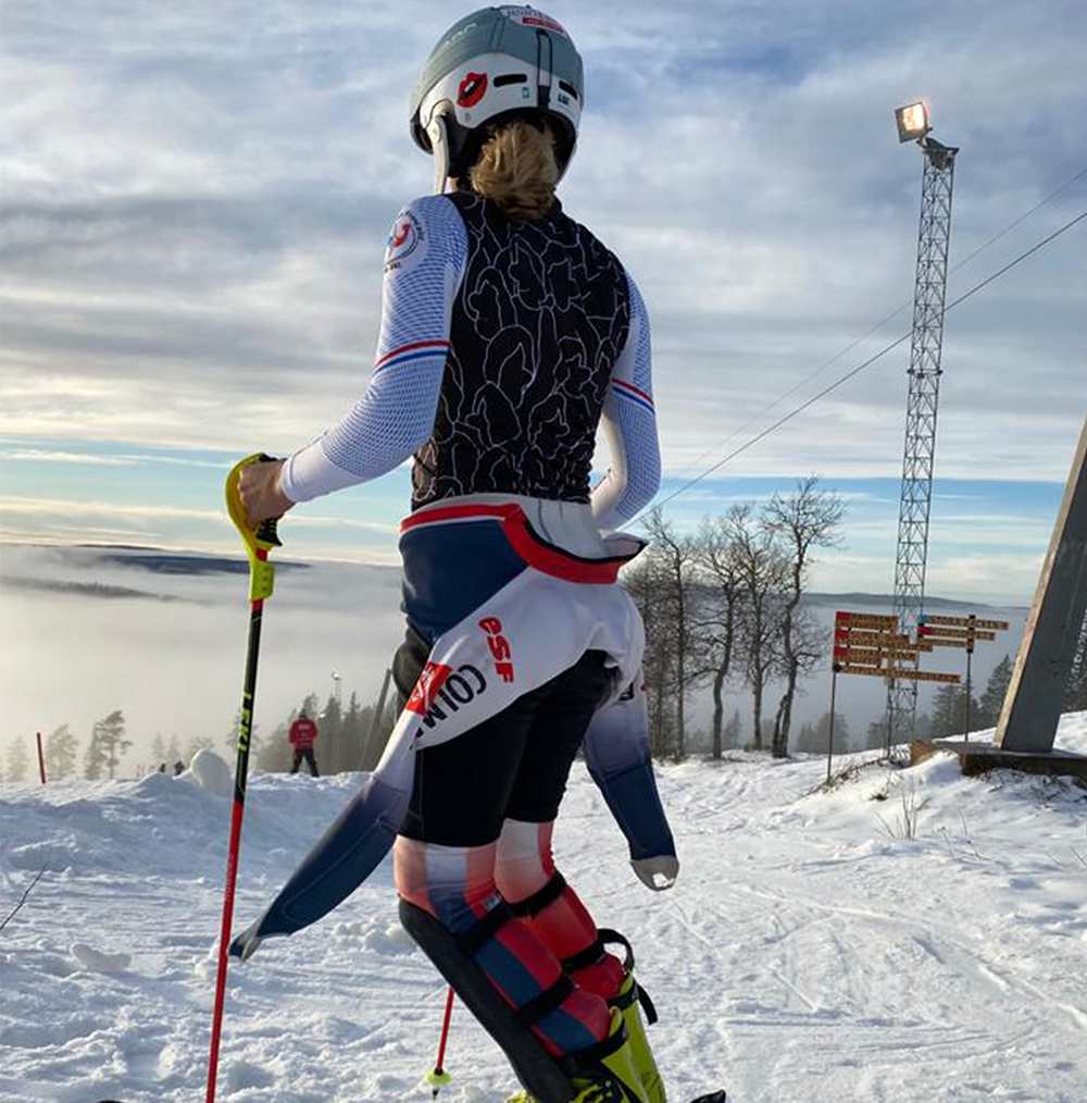 Léna glisse son Armure en dessous de sa combinaison lors de toutes ses compétitions et de tous ses entrainements ! « J’ai une Armure dorsale Bisous et une Alias, sont trop stylés ! J’adore les porter et je me sens protégée. C’est un vrai plaisir de les mettre et non une contrainte contrairement à celles que j’avais avant ! »