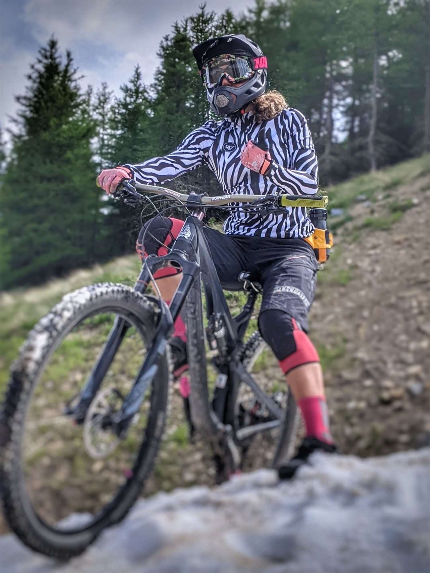 20 ans de carrière exceptionnelle : 8 fois Champion du Monde, 13 fois Champion de France, 2 fois vainqueur du VTT à Paris Bercy. Notre héros arc en ciel, nous fait toujours rêver avec son trick Bisous, et ses cascades les plus folles les unes que les autres. « Géniales tes Armures Sophie, je ne les sens pas. Je peux me concentrer à fond sur mes sauts ».